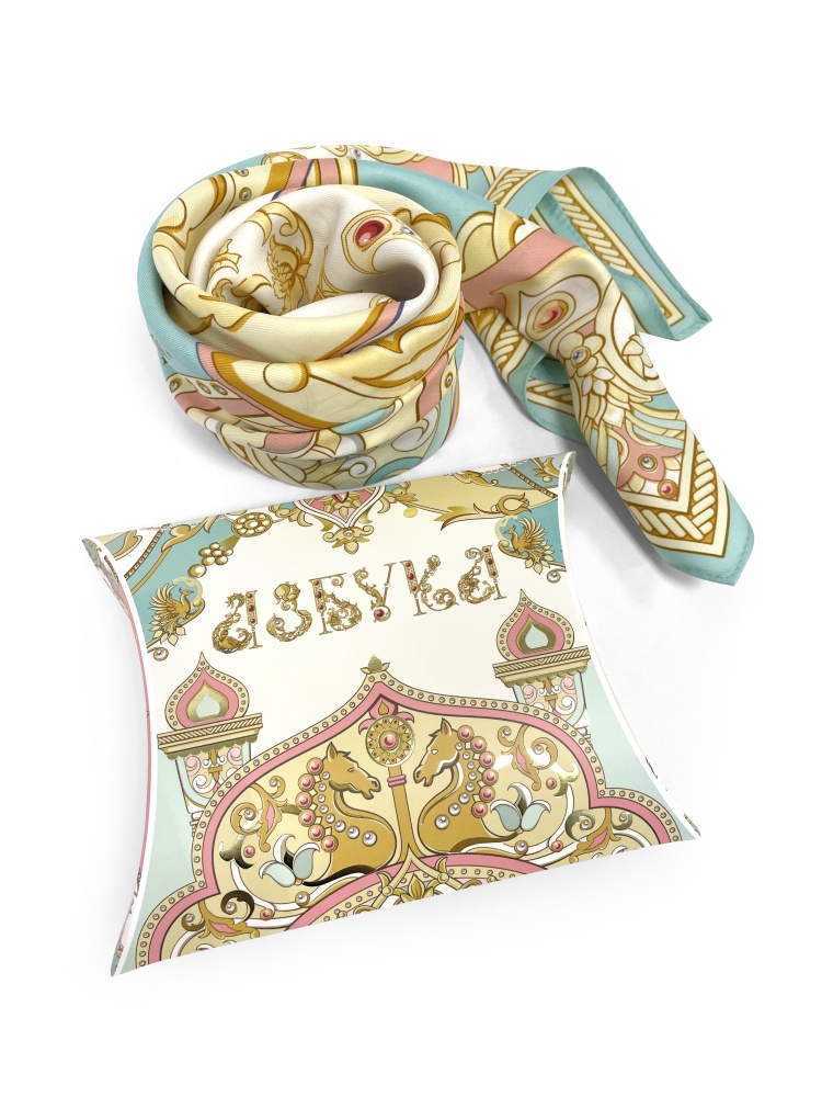 -Платок "Русская Азбука" , 90*90, 70% шёлк 30% вискоза