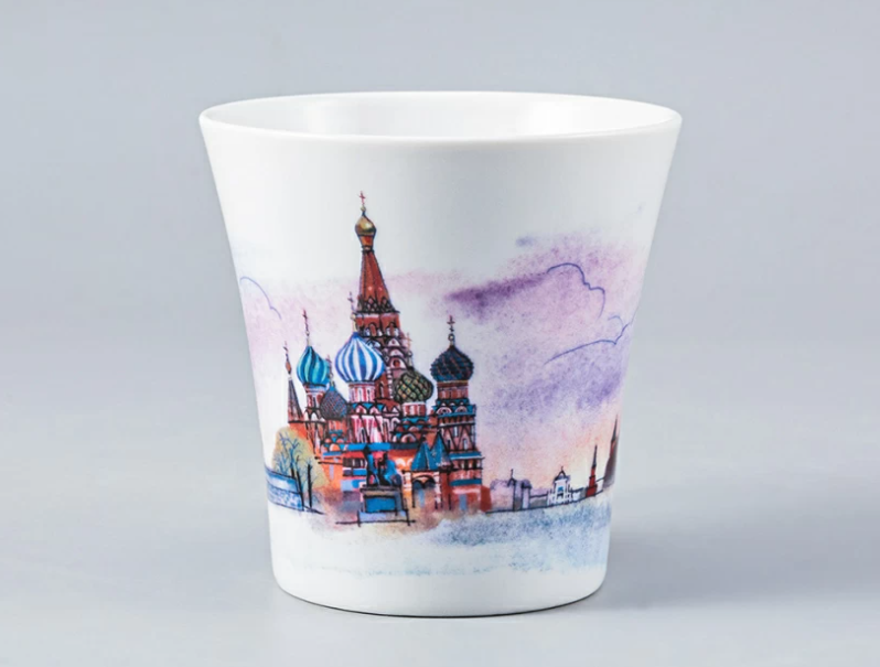 На бокалах формы «Ленинградский» авторства Э. Криммера изображены одни из самых узнаваемых достопримечательностей Москвы: легендарная монументальная высотка на Котельнической набережной – одна из семи сталинских высоток, ставших пределом мечтания для многих советских людей, Красная площадь с известным во всем мире Храмом Василия Блаженного, а также одна из наиболее значительных достопримечательностей Москвы – Новодевичий монастырь.