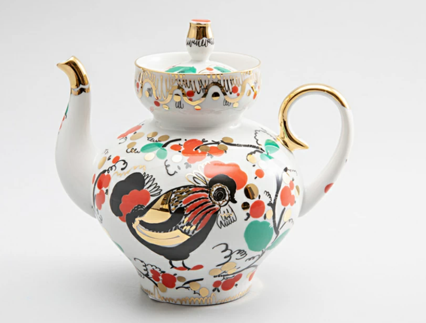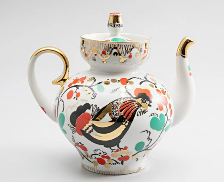 Чайник заварной . Петушки изготовлен на Императорском фарфоровом заводе из твердого фарфора с элементами ручной росписи. Автор рисунка - Григорьева Л.И. Объем изделия - 600 мл. Форма "Бутон" создана в 1972 году Борисовым А.И.Рисунок "Петушки" для этой формы был создан в 1972 году Григорьевой Л.И.