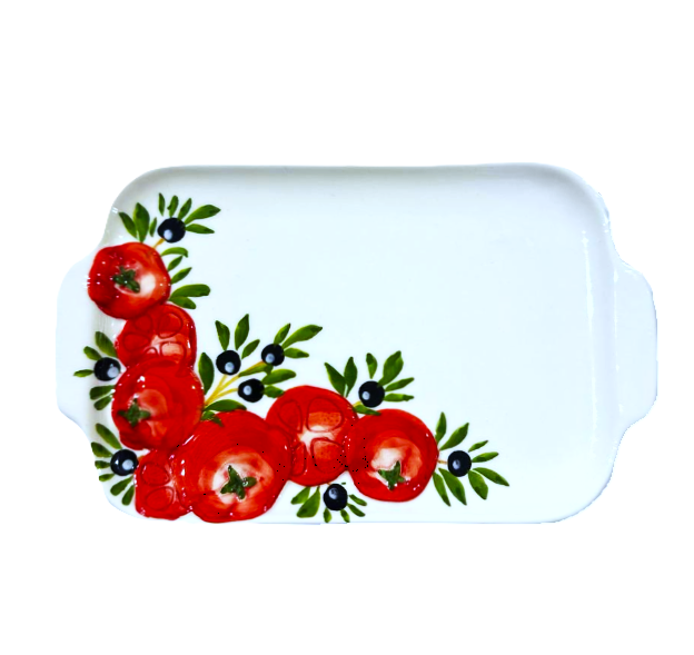 Блюдо прямоугольное с ручками Edelweiss Томаты и оливки 16х26 см, керамика